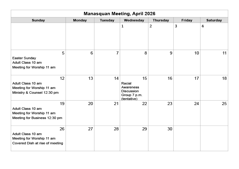 Manasquan Monthly Calendar